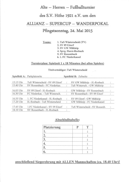 Der SV Höhe sagt natürlich DANKE bei all denen, ob Gäste, Mannschaften, Organisatoren, Helfer, Gönner, etc., die dieses Fest zu einem schönen Erlebnis machten. Dafür arbeiten wir jetzt schon mit Hochdruck am Sportfest zu Pfingsten 2016, damit wir Sie ”op d’r Hüh” wieder begrüßen können.